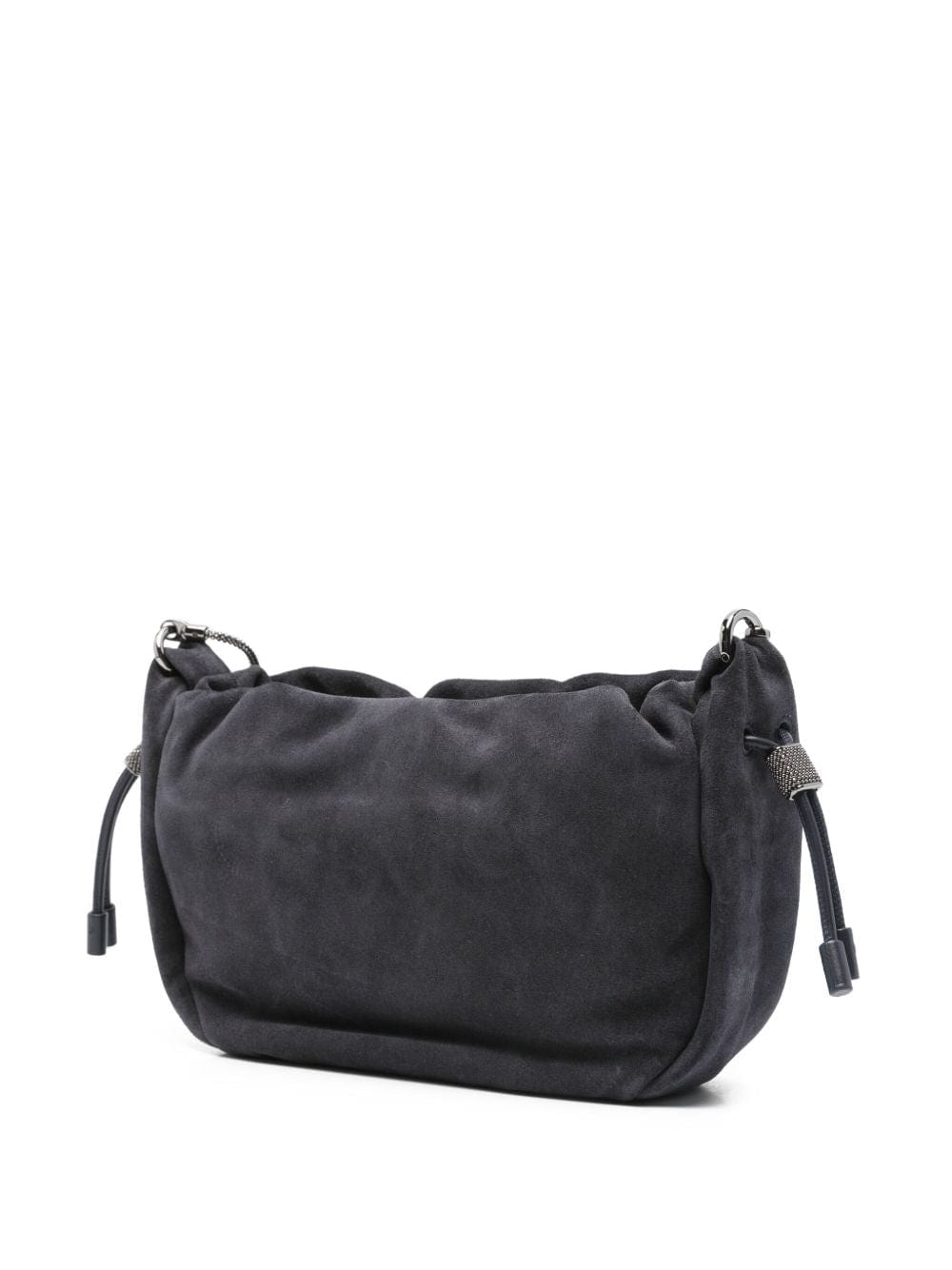 dark blue calf suede drawstring closure chain strap gathered detailing Bucket Mellow mini crossbody bag