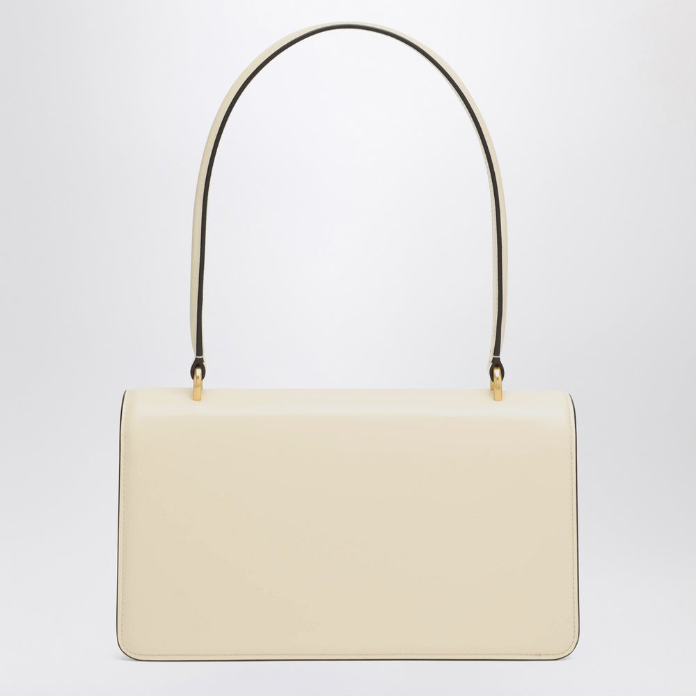 Valentino Garavani handbag in shiny butter white calfskin, characterized by a top handle, antique gold finish metal parts, magnetic flap closure with VLogo on the front, leather lining, one internal zip pocket, and one internal flat pocket.